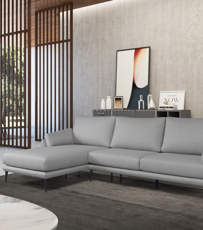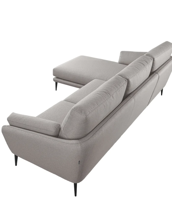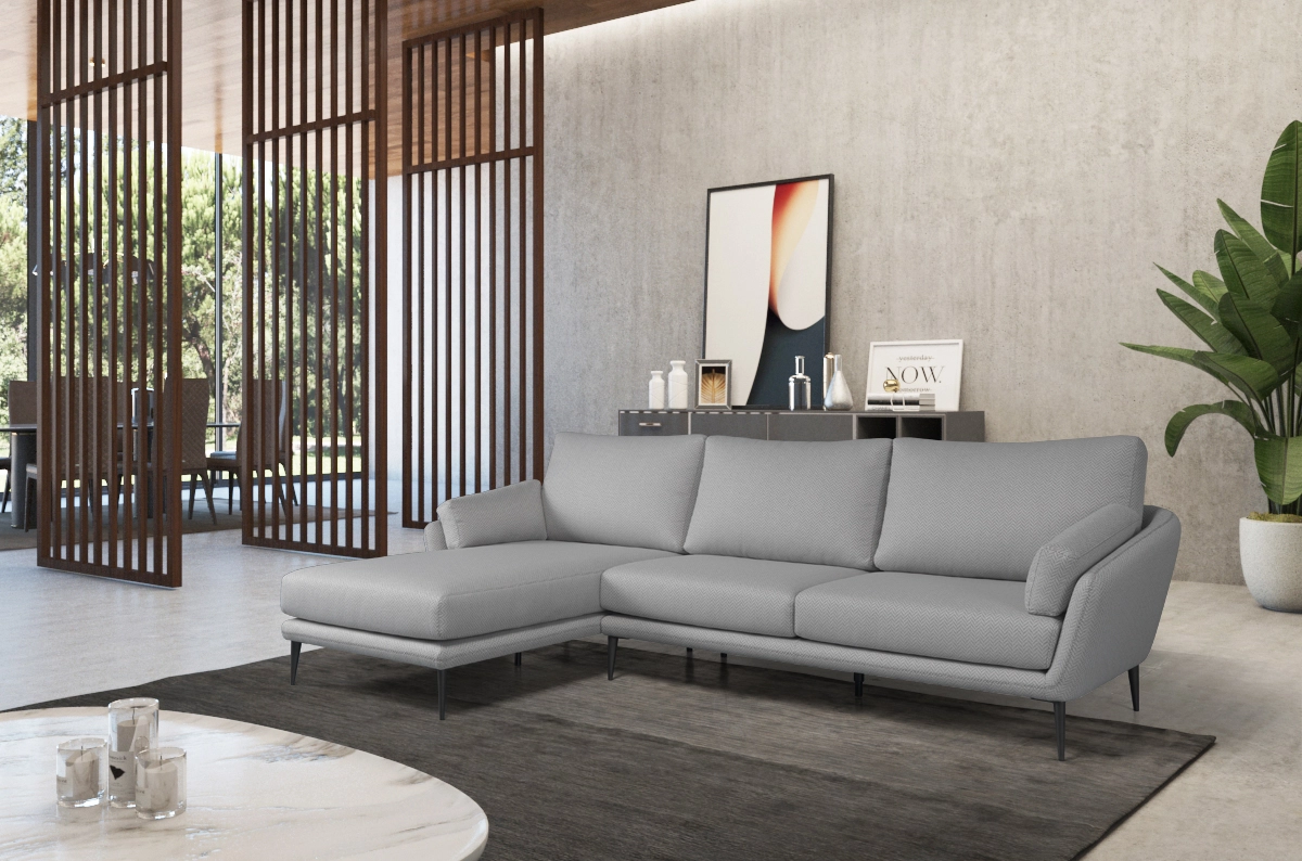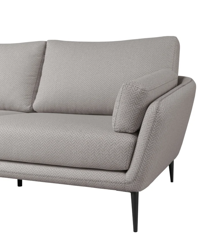 O Alice é a combinação perfeita entre leveza visual e conforto envolvente. Com formas suaves e arredondadas, este sofá adapta-se harmoniosamente a diferentes estilos de decoração, trazendo sempre um toque de sofisticação. Os pés altos e cónicos, disponíveis em negro mate ou cromado, elevam não só a estrutura, mas também a sensação de espaço e leveza na sala.