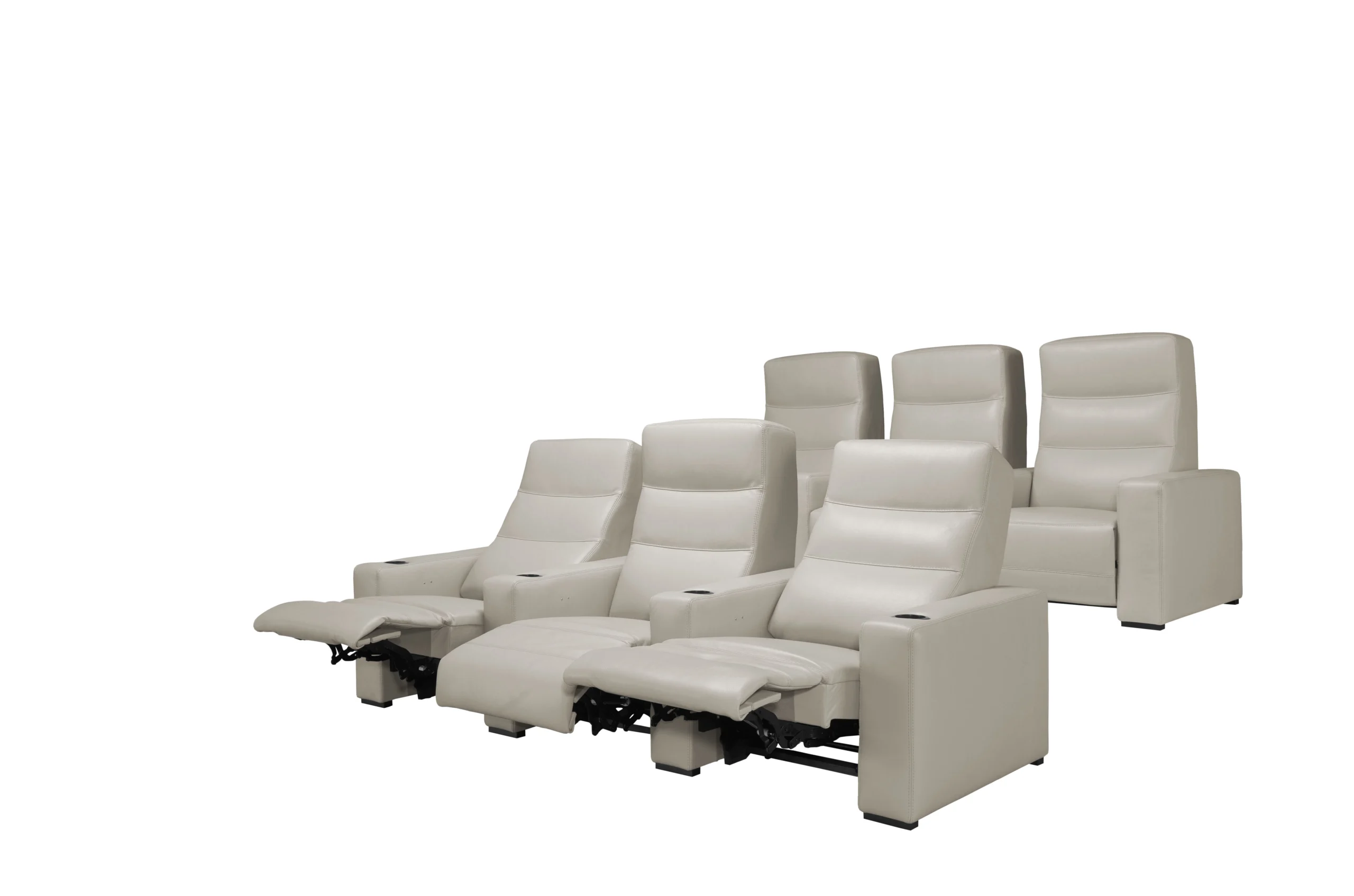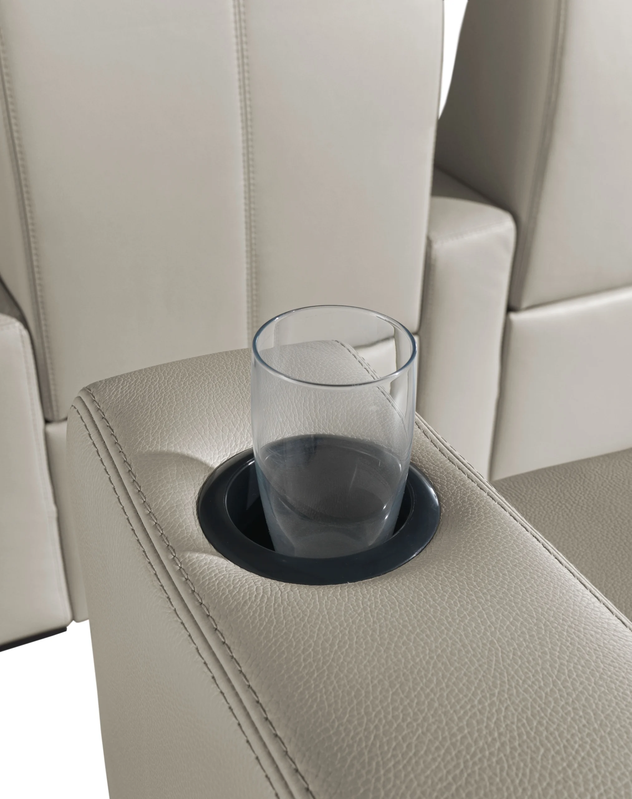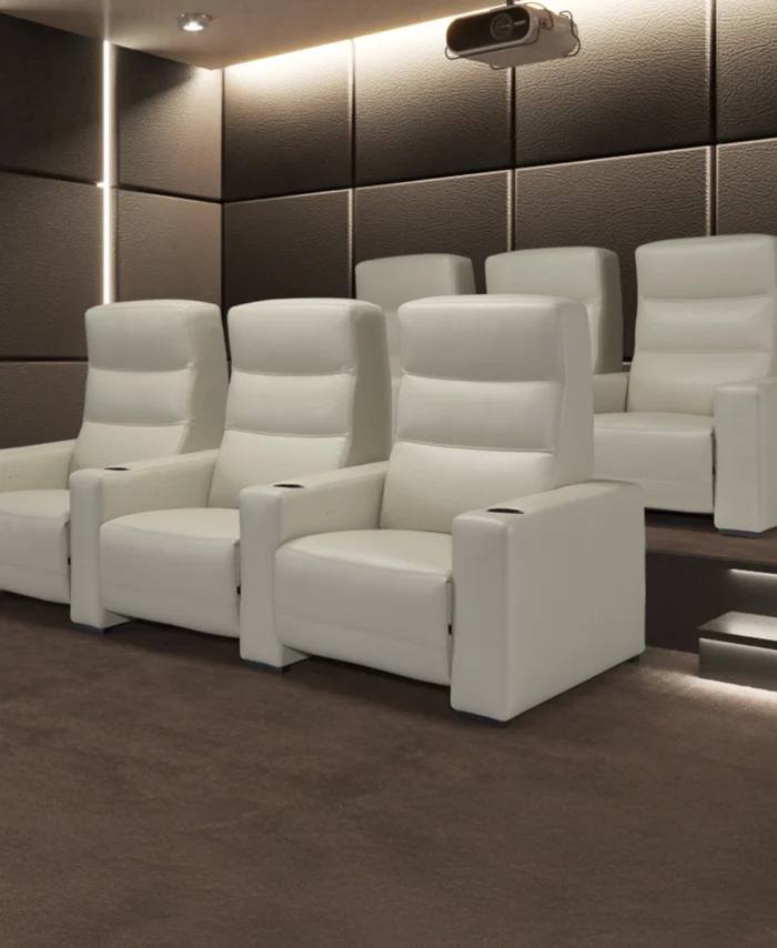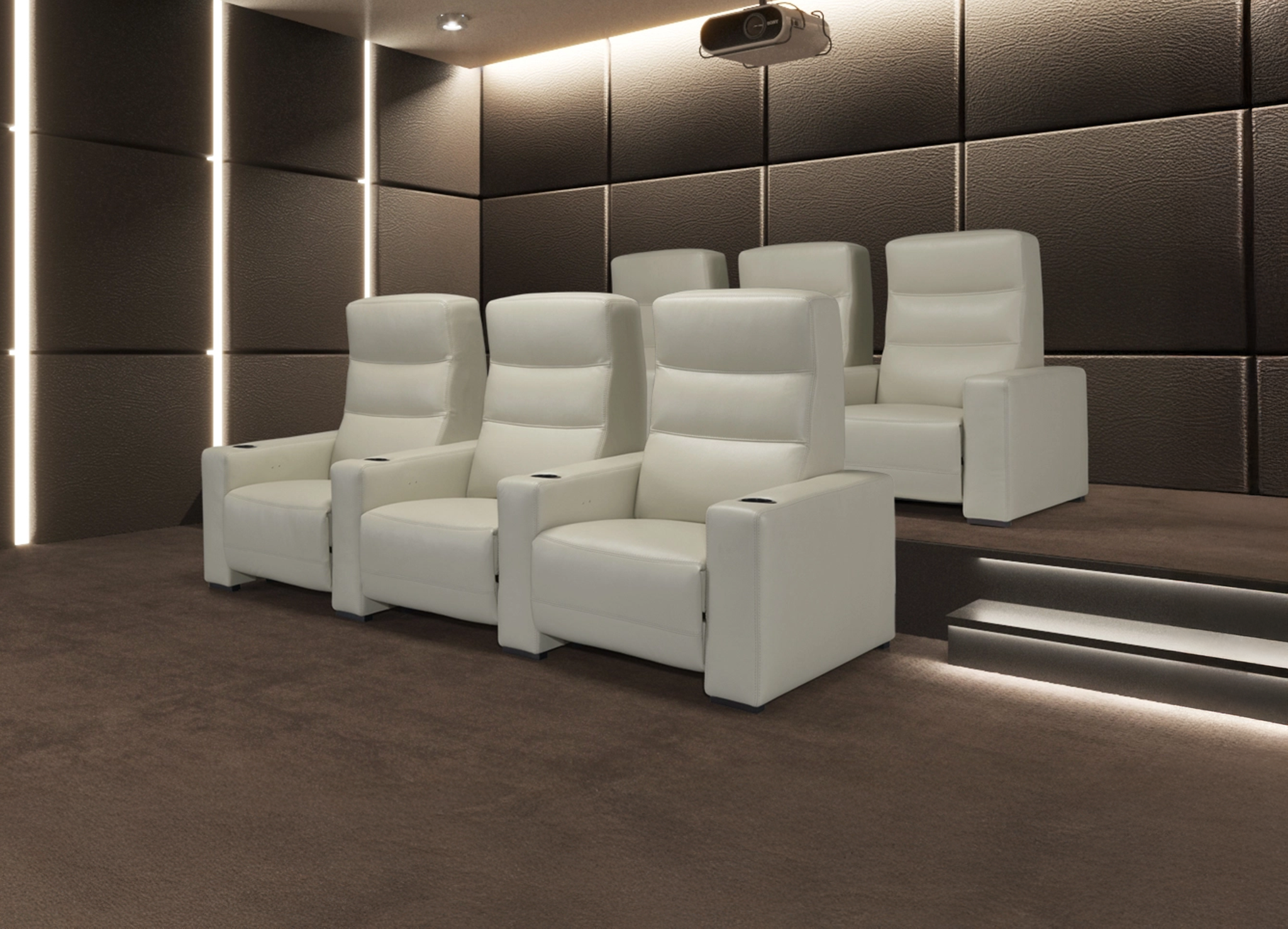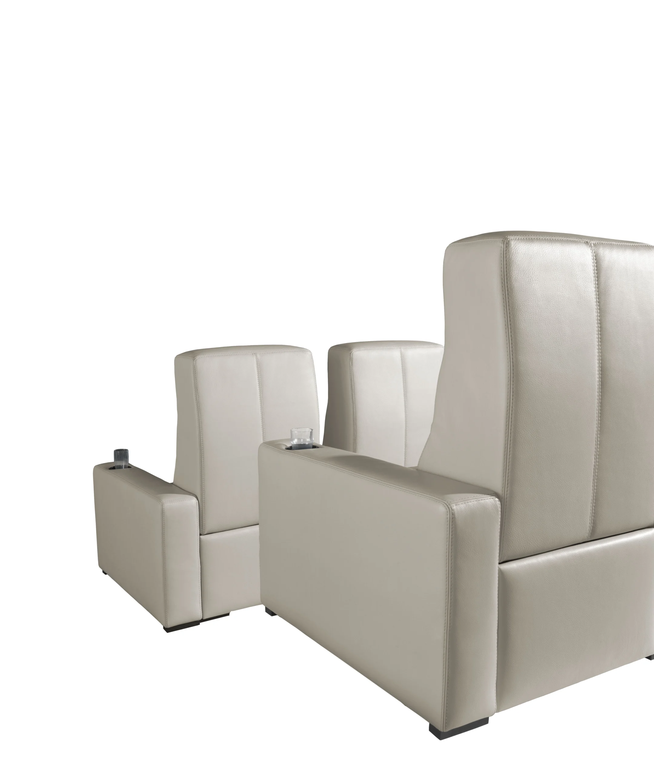 O relax elétrico integrado permite ajustar a posição com um simples toque, enquanto o braço inclui suporte de copos — um detalhe que torna a experiência ainda mais prática e imersiva. Disponível em tecido ou pele à escolha do cliente, adapta-se tanto a ambientes sofisticados como a espaços modernos dedicados ao entretenimento.