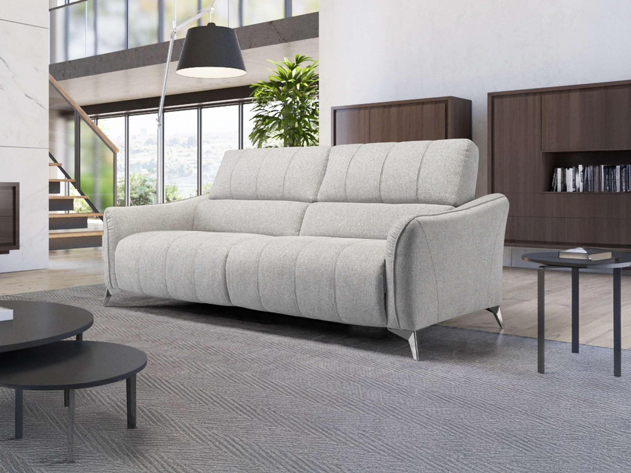 Totalmente modular, o Ava oferece liberdade para criar a configuração ideal para cada espaço. Está disponível com assentos fixos ou com relax elétrico, permitindo uma abertura total para desfrutar de momentos de descanso absoluto. O encosto integra um sistema manual de múltiplas posições, adaptando-se ao conforto de cada utilizador com facilidade.