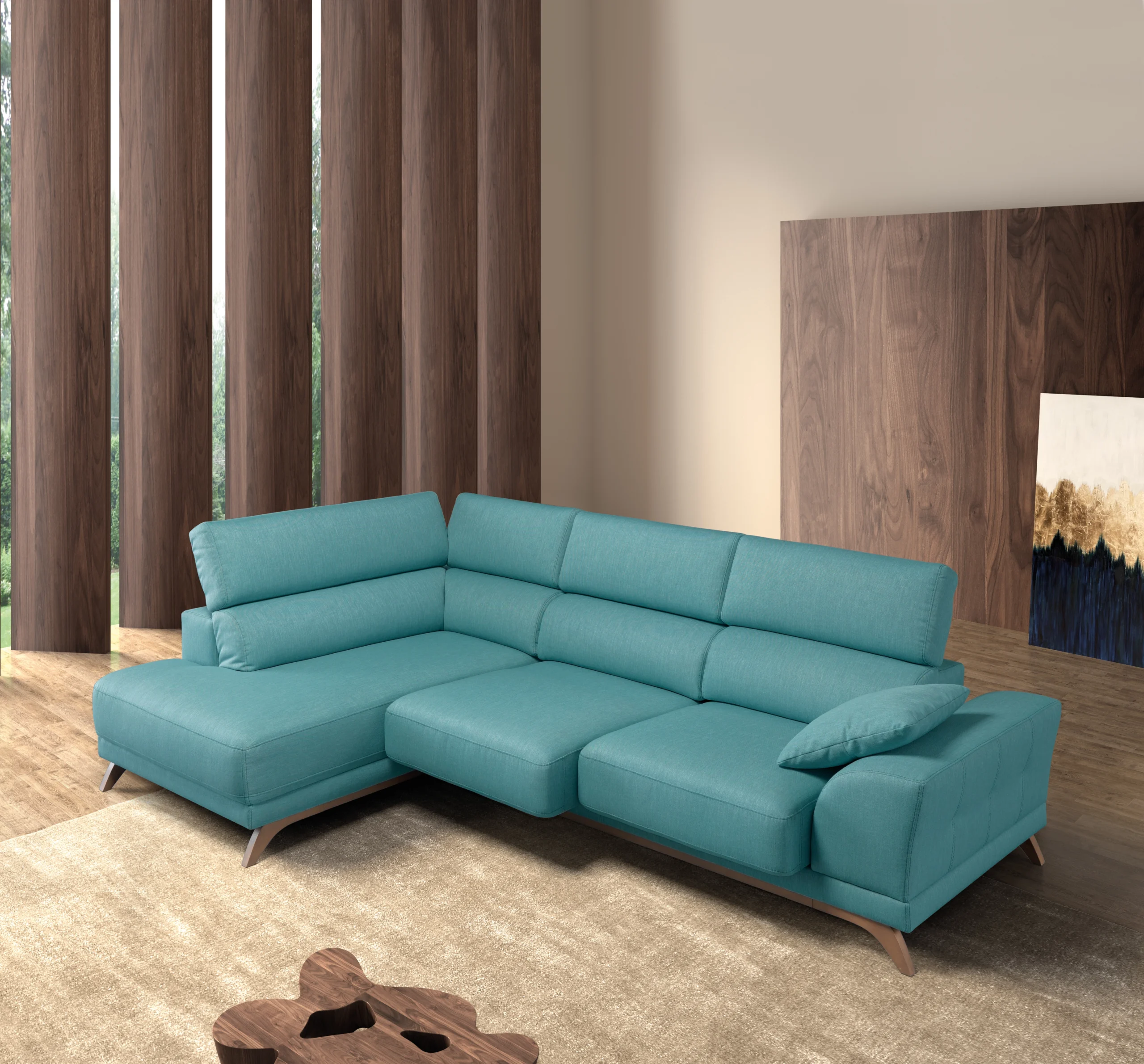 O sofá Eric é o equilíbrio entre design moderno e funcionalidade inteligente. Com linhas suaves, pés altos em madeira e acabamentos personalizáveis, adapta-se com elegância a ambientes contemporâneos, sem perder o toque caloroso e natural da madeira que contorna toda a sua base.