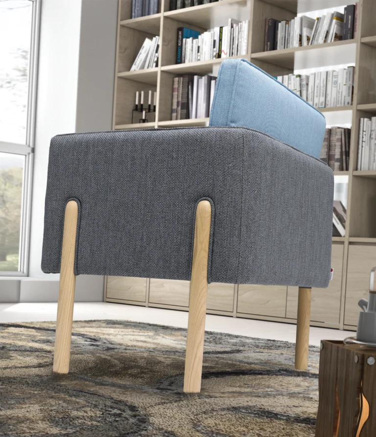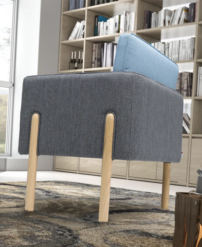 A estrutura em madeira de pinho e MDF, totalmente revestida em espuma de 23kg/m³ e fibra acrílica, garante solidez e suavidade. O assento em espuma HR de 35kg/m³ proporciona firmeza com conforto prolongado, enquanto o encosto removível e as almofadas de braços em espuma HR de 30kg/m³ oferecem apoio ergonómico e adaptável.
