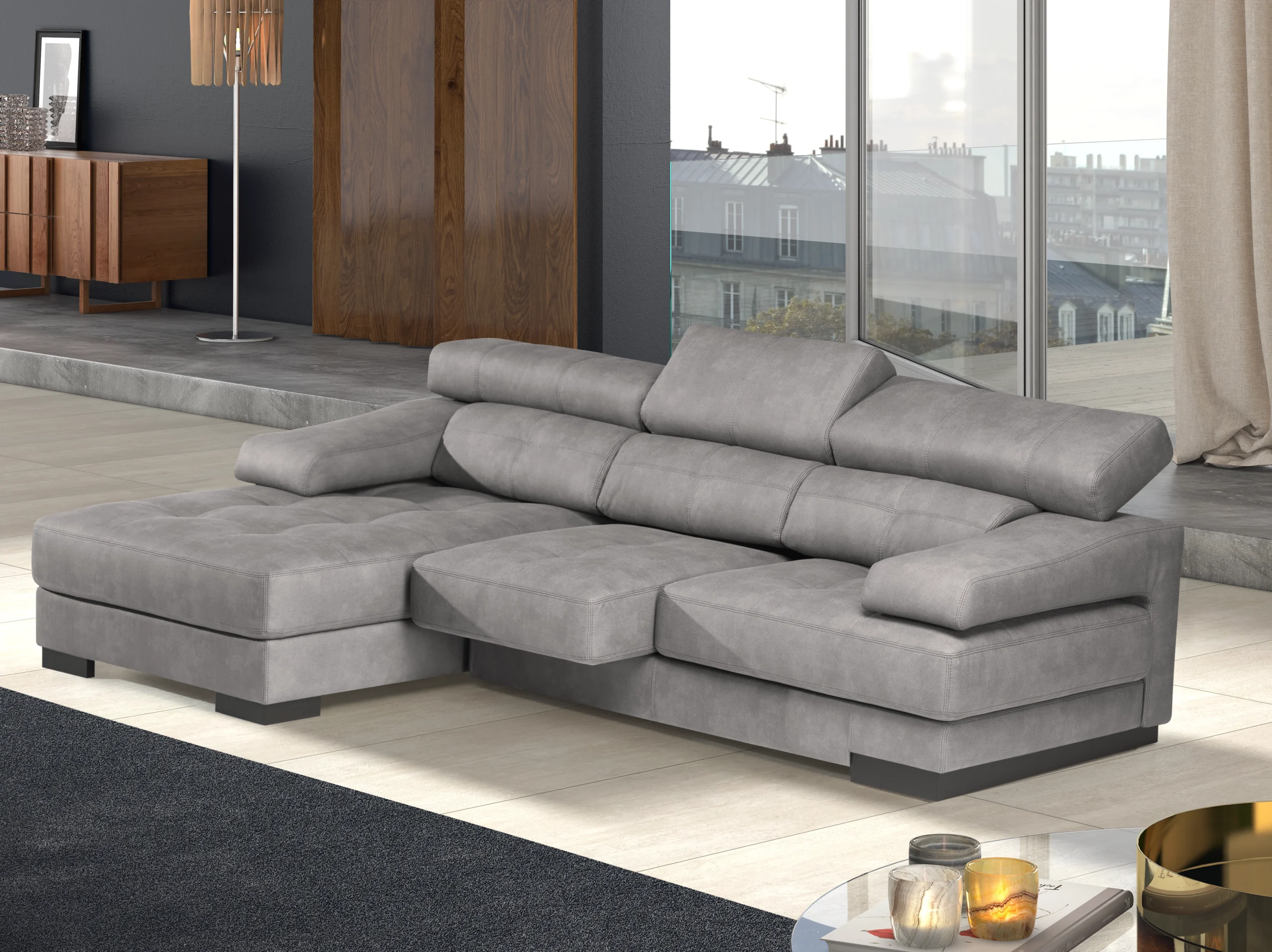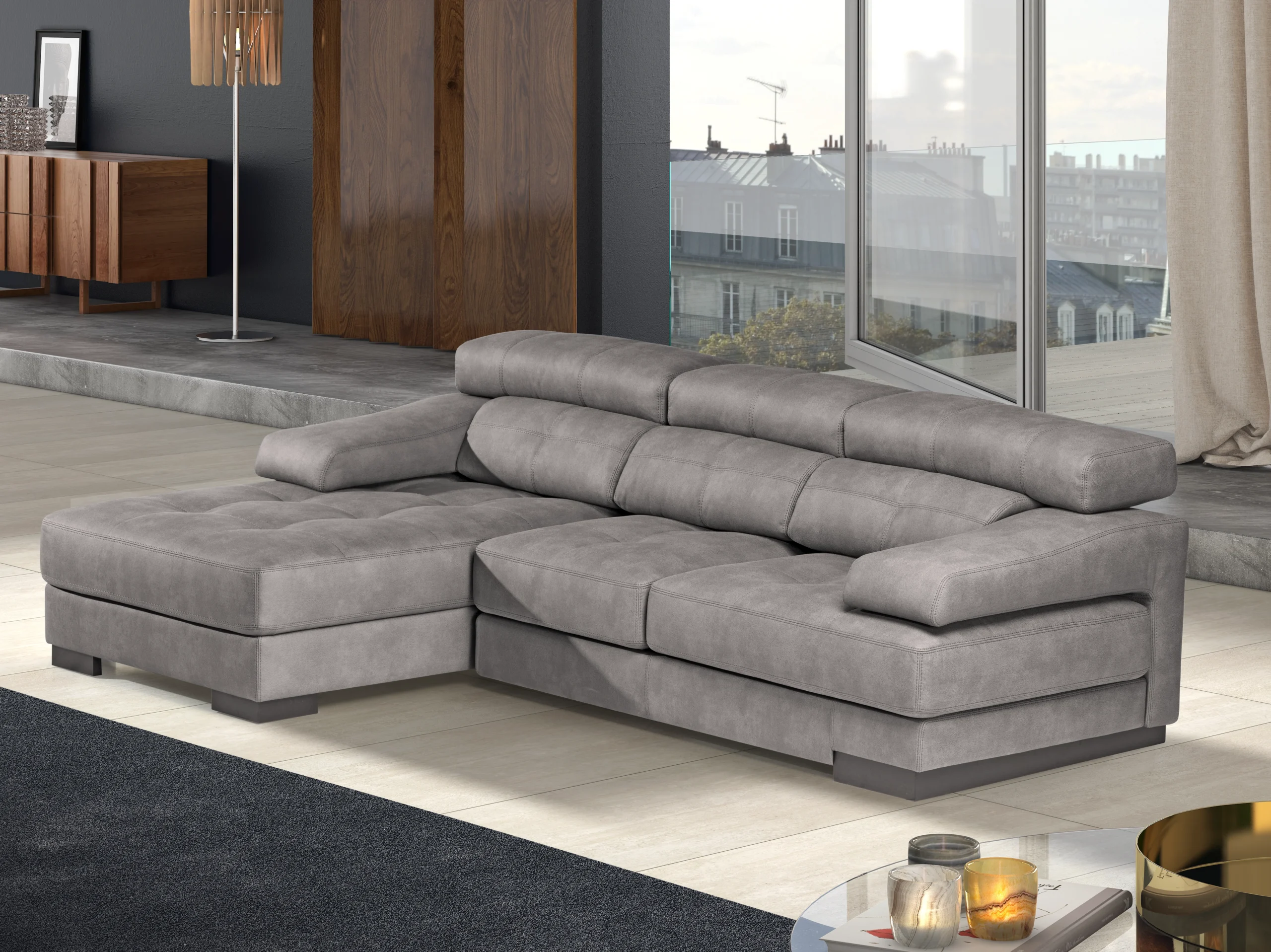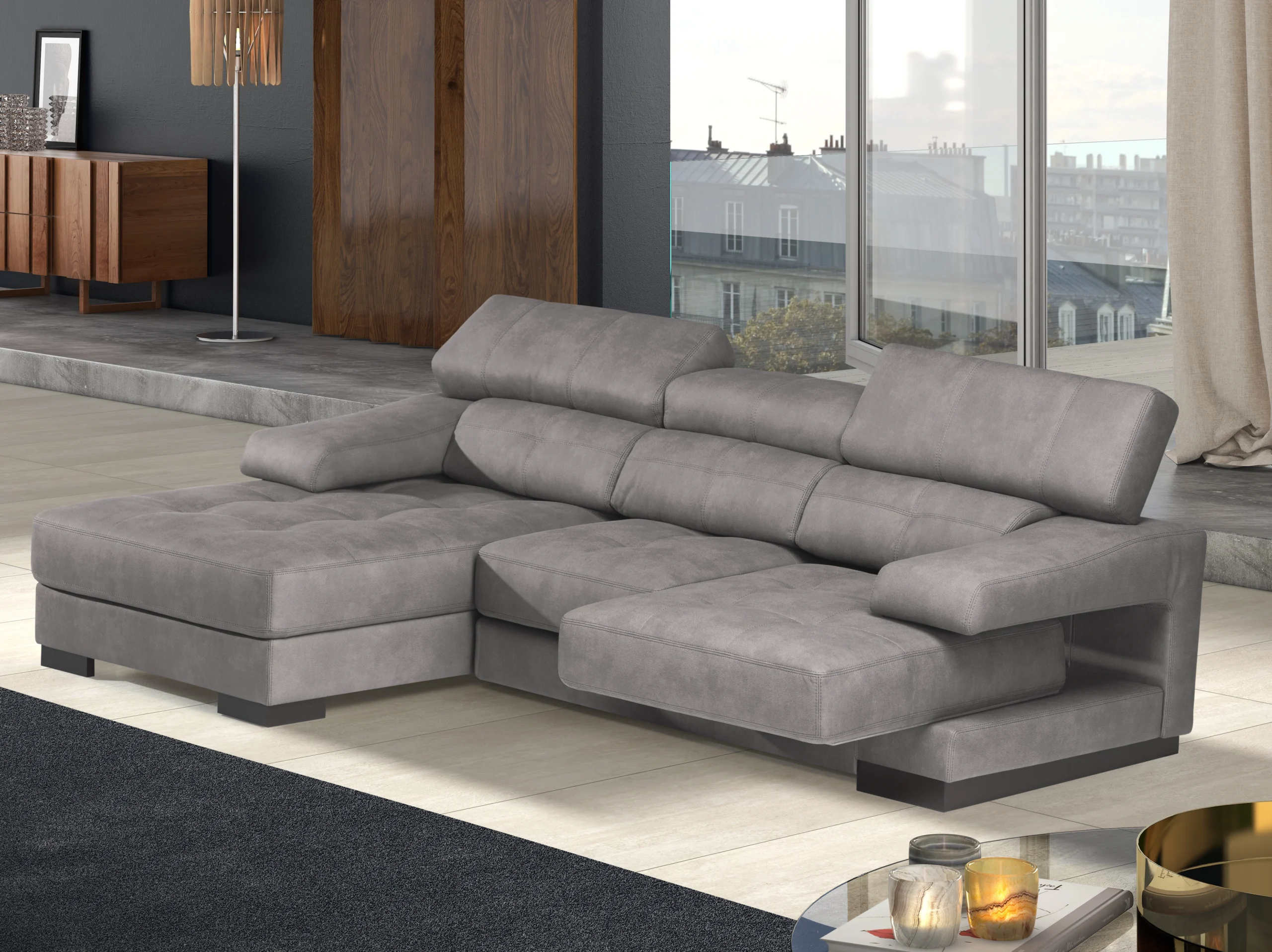 Apoios de cabeça com reclinável manual em espuma 25kg/m3 super soft, revestidos a fibra acrílica;