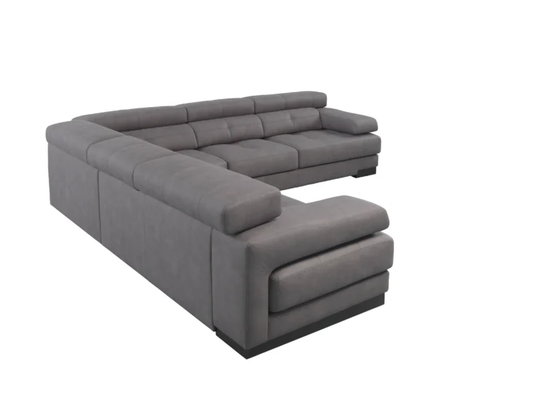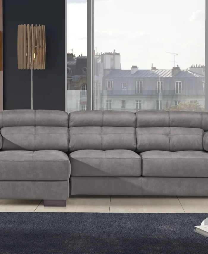 Estrutura em madeira de pinho e MDF, revestida em espuma de 23kg/m3 e fibra acrílica;