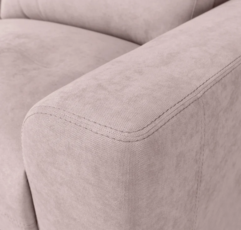 Estrutura em madeira de pinho e MDF, revestida em espuma de 23kg/m3 e fibra acrílica;