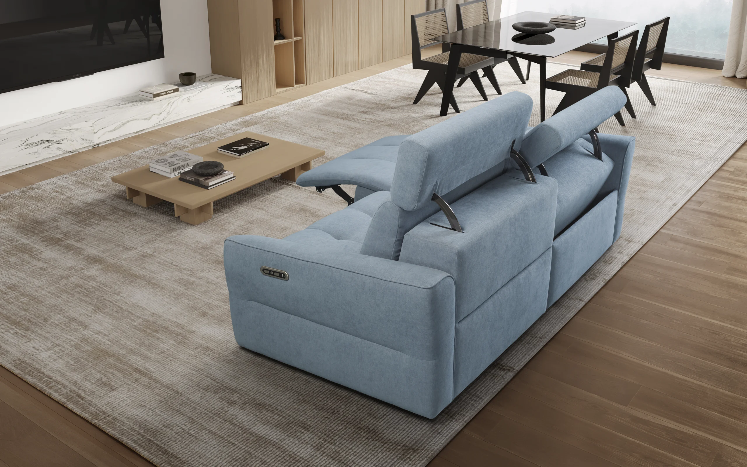 Com configurações versáteis, chaise longue, 3, 2, 5, 2 ou 1 lugar, e assentos disponíveis em 60, 70, 80 e 90 cm, o Kieza adapta-se a qualquer espaço e necessidade. De série, conta com apoios de cabeça manuais, mas pode ser equipado com versões elétricas e relax elétrico nos assentos, permitindo ajustar o conforto ao gosto de cada utilizador.