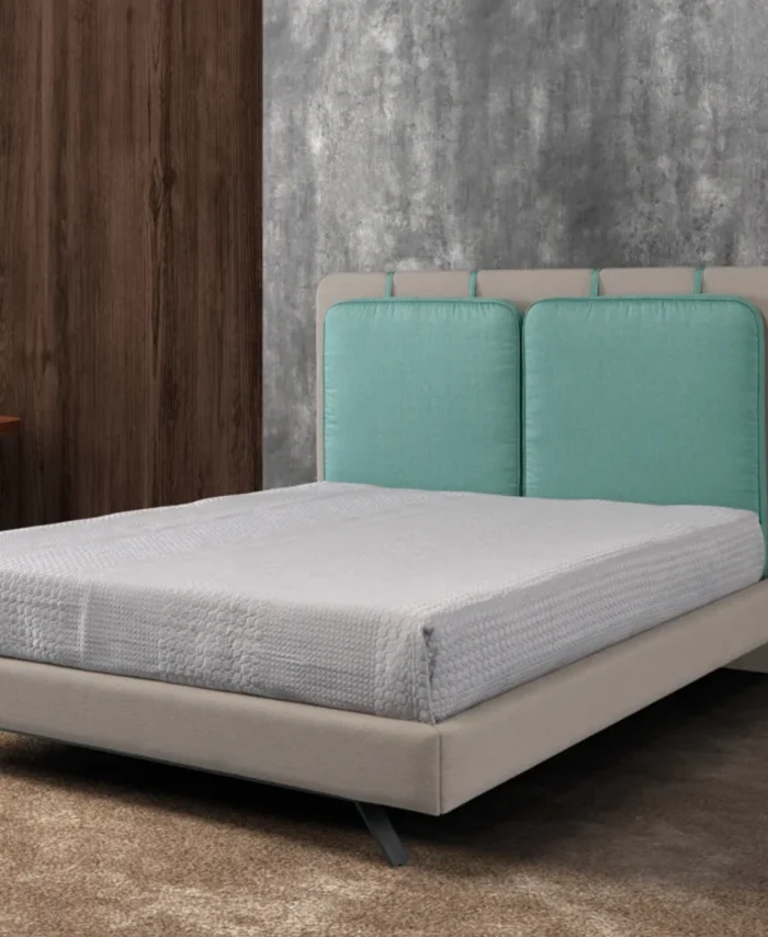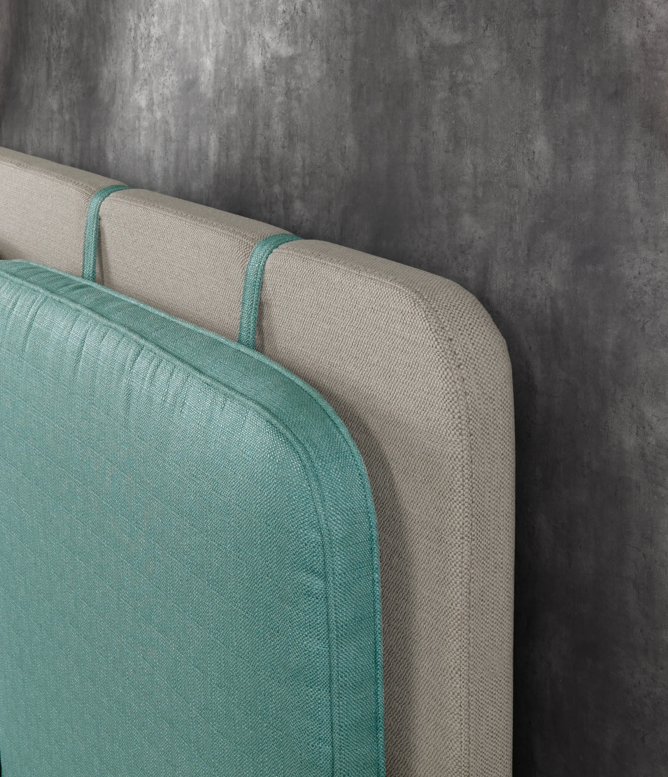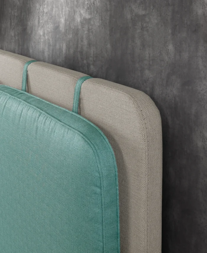 A cama Naturae distingue-se pela sua cabeceira com almofadas soltas, que oferecem suavidade e apoio extra, transmitindo uma sensação de acolhimento imediato. A possibilidade de personalizar estas almofadas em cores ou tecidos diferentes abre espaço para criar combinações únicas e expressivas.