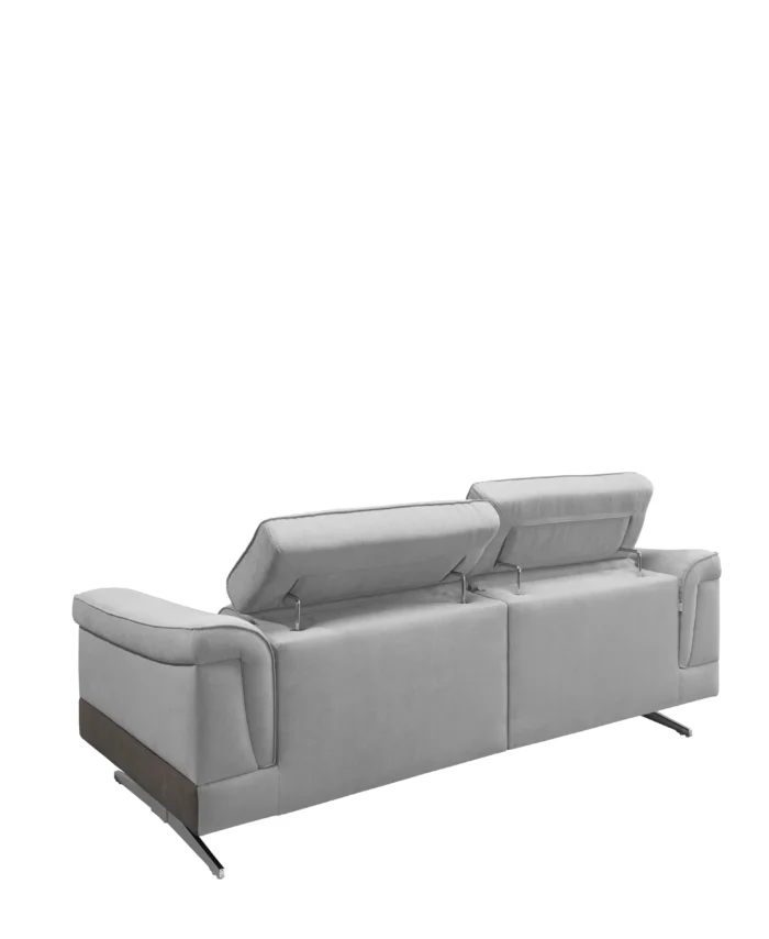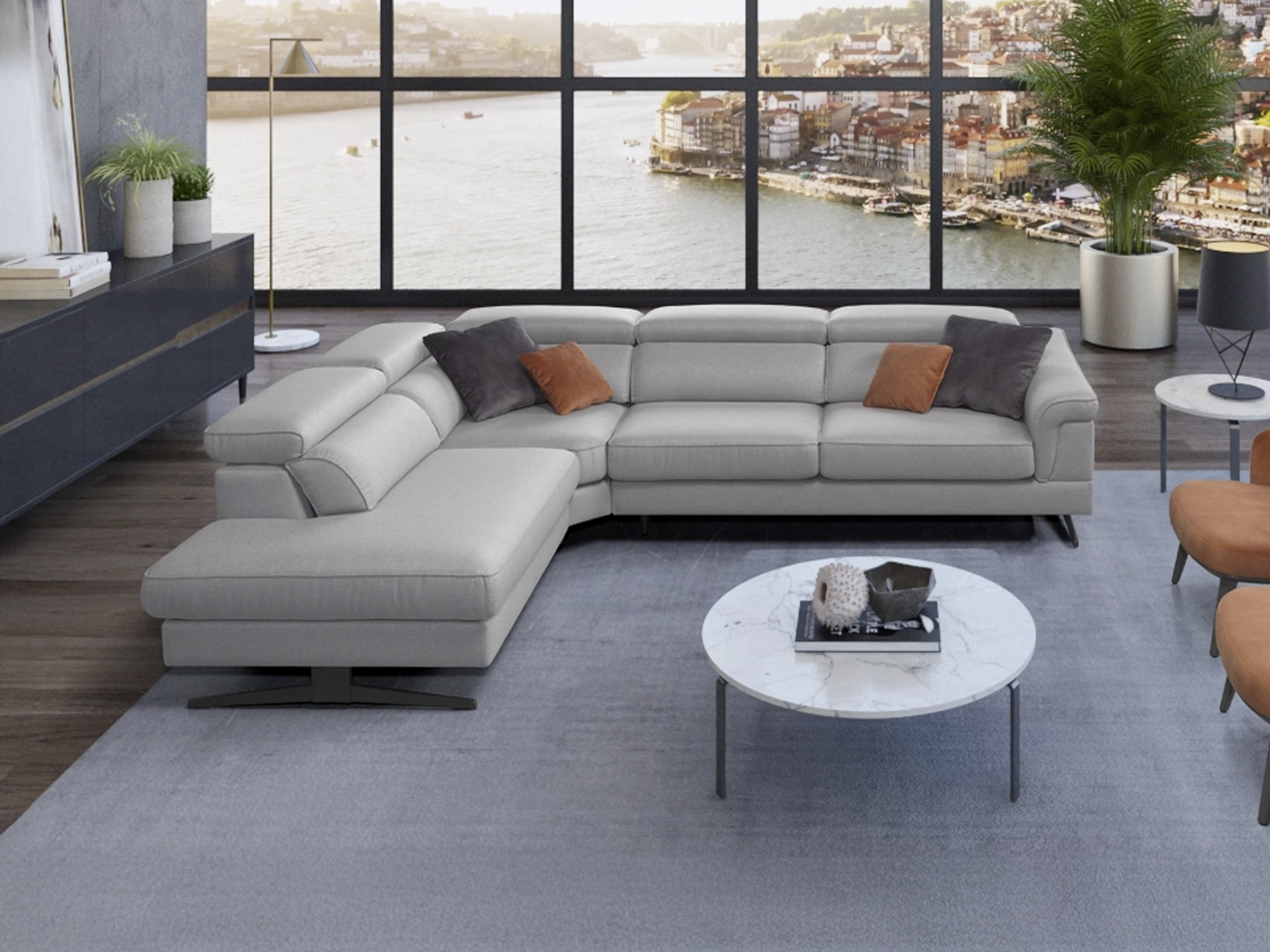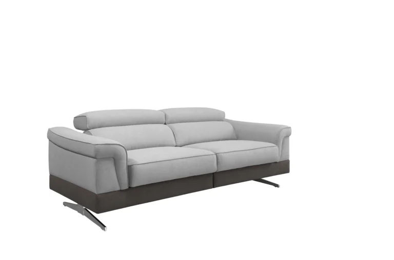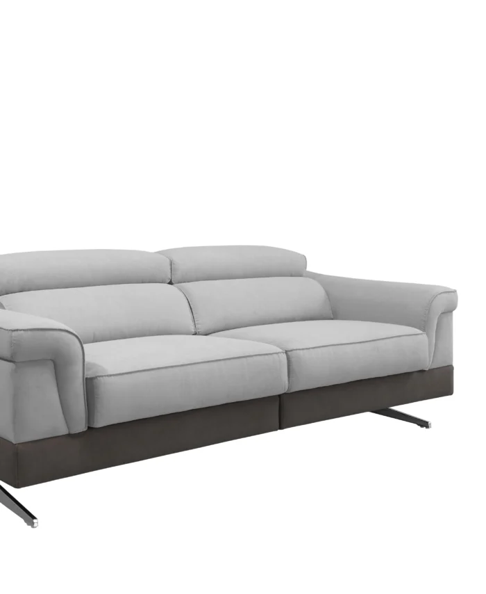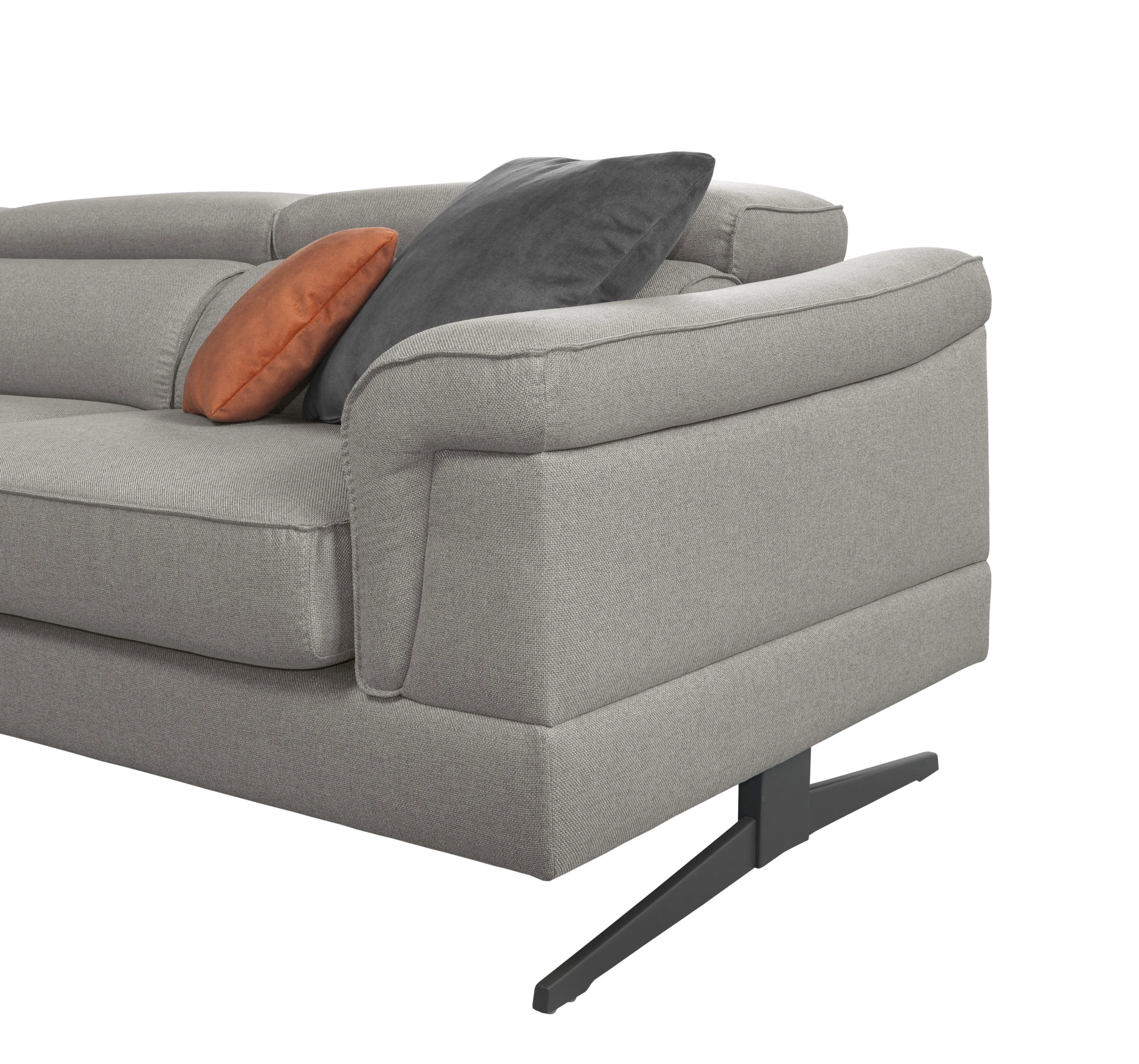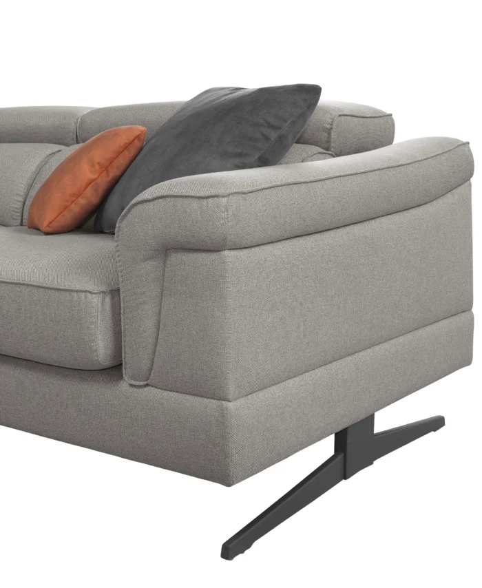 Os encostos de cabeça reclináveis com várias posições adicionam uma camada extra de conforto personalizado, ideal para leitura, televisão ou simples repouso. O pé metálico alto de 15 cm, disponível em acabamento negro mate ou cromado, confere leveza visual e facilidade na limpeza do espaço.