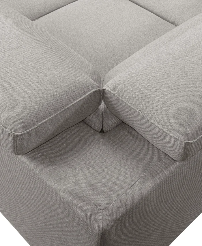Totalmente modular, adapta-se a diferentes espaços e configurações, desde salas amplas a zonas de estar mais compactas. Os assentos deslizantes transformam-se facilmente em superfícies de descanso mais profundas, permitindo que o corpo se estenda por completo com naturalidade. Perfeito para quem gosta de relaxar sem sair do estilo.