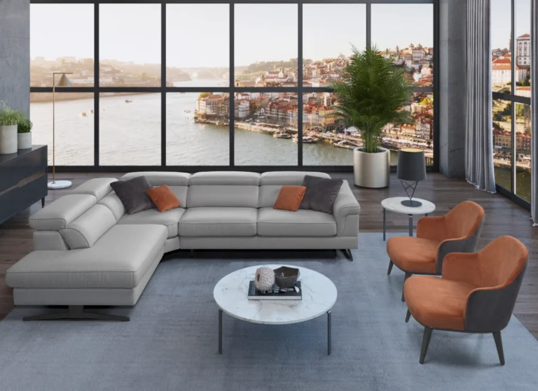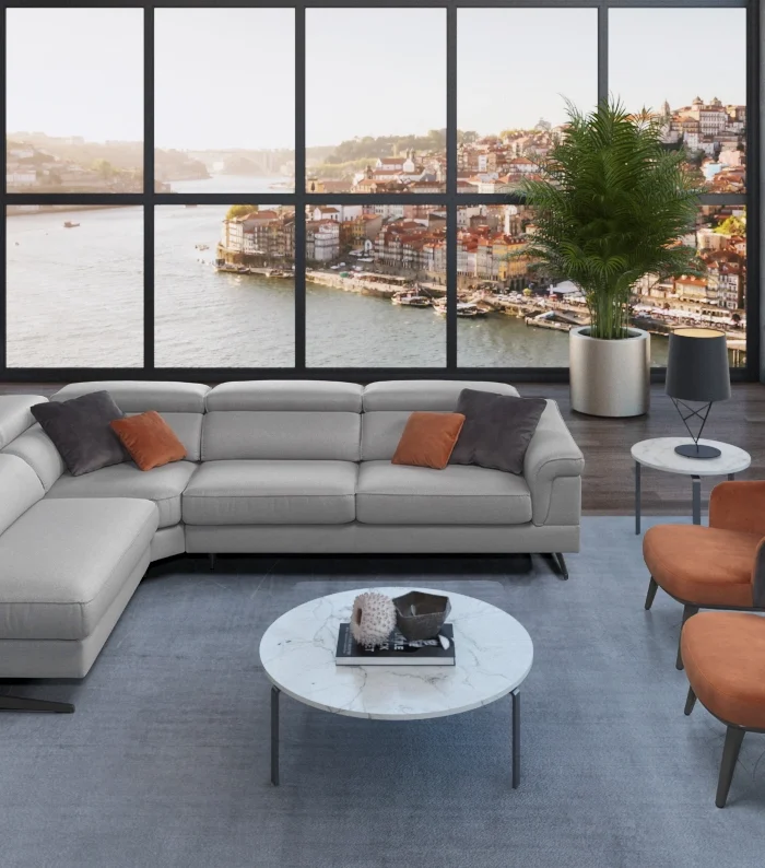 A sua estrutura em madeira de pinho e MDF, totalmente revestida em espuma de 30kg/m³ e fibra acrílica, assegura robustez e durabilidade. O assento fixo em espuma HR de 35kg/m³, aliado à almofada lombar em comforel, oferece firmeza, apoio ergonómico e conforto prolongado. O Onna adapta-se com facilidade a diferentes estilos e projetos de decoração.