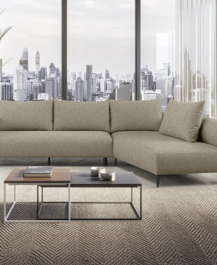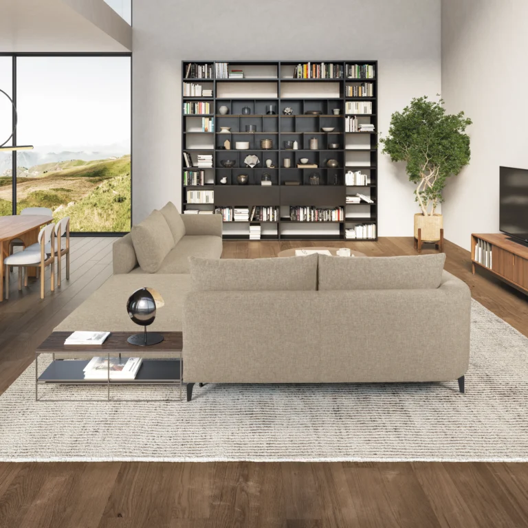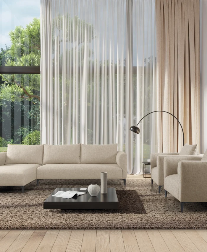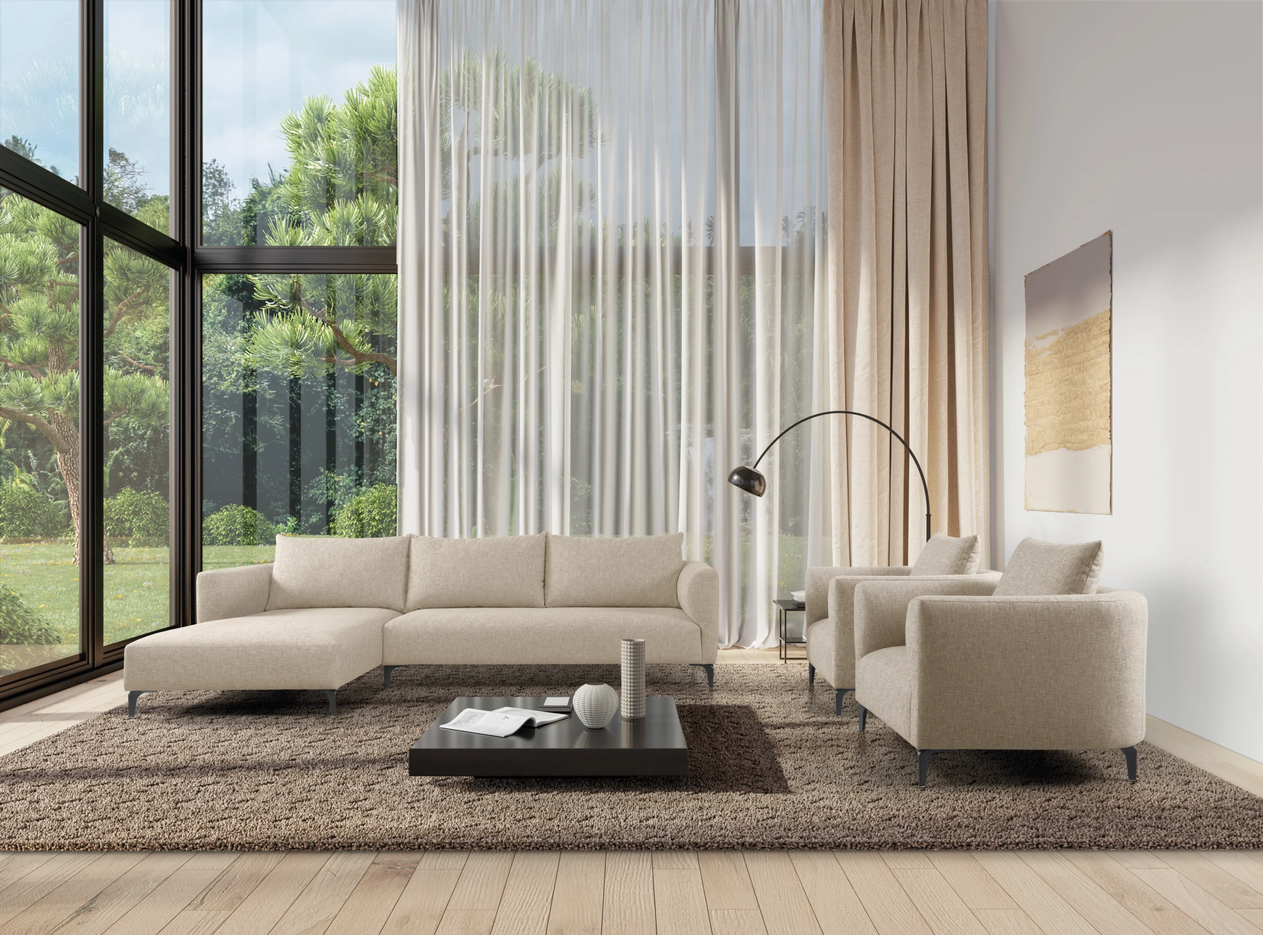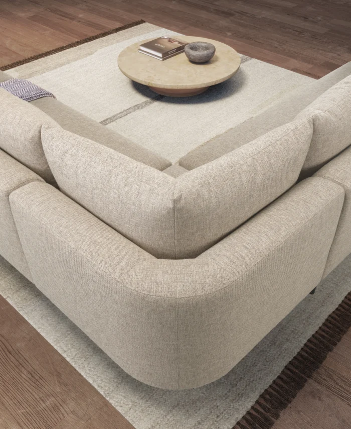 O Soori é o sofá que transforma qualquer espaço num convite ao descanso. Com formas generosas, curvas suaves e almofadas soltas e volumosas, tem uma presença marcante — mas sem perder leveza e elegância. A base do assento mantém-se reta e contínua, criando um contraste visual que reforça o carácter moderno e arrojado do modelo.