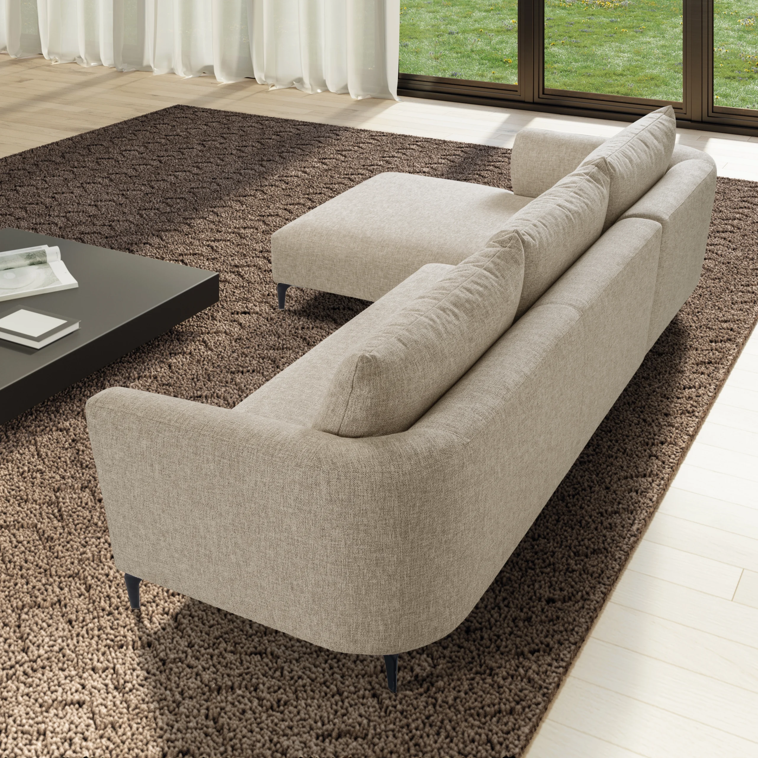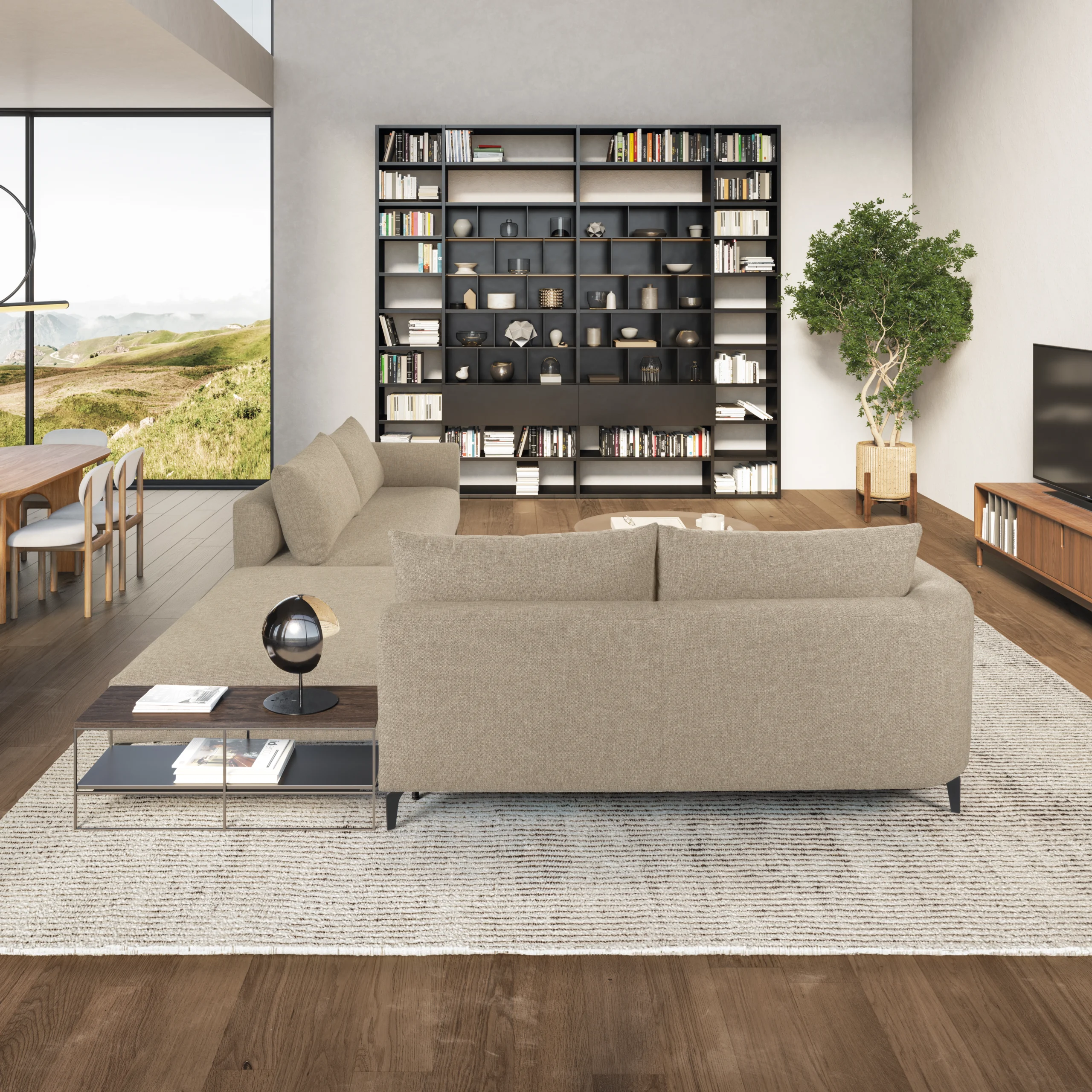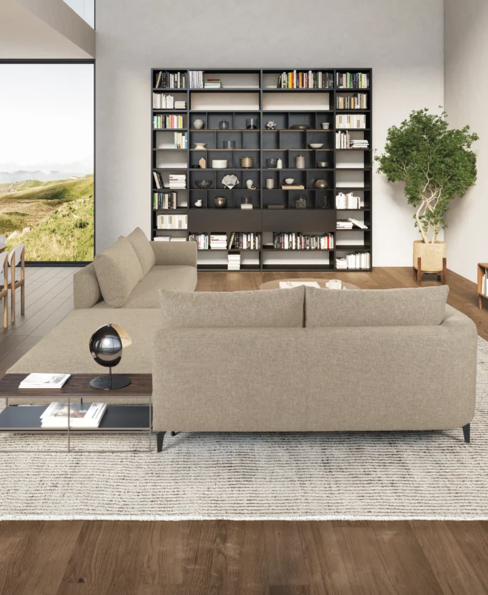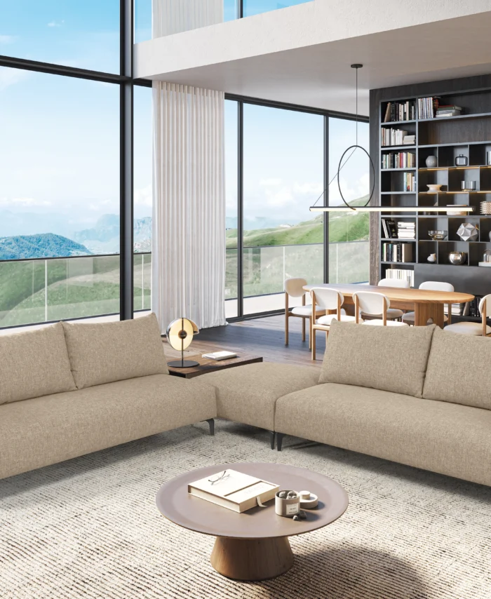 Este é um sofá modular, pensado para se adaptar a diferentes estilos de vida. Seja para criar um canto de leitura, uma composição com chaise longue ou um sofá amplo para a família, o Soori molda-se às necessidades e preferências de cada cliente.