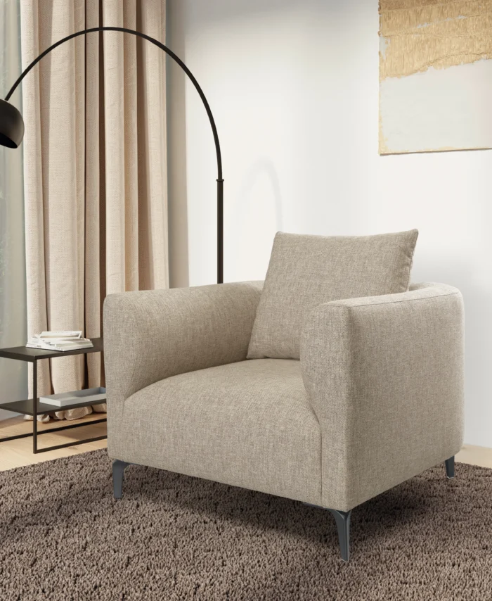 Disponível com pés altos de 15 cm em acabamento negro mate ou cromo, e com tecidos à escolha, o Soori oferece personalização com estilo, para todos os que valorizam conforto com personalidade.