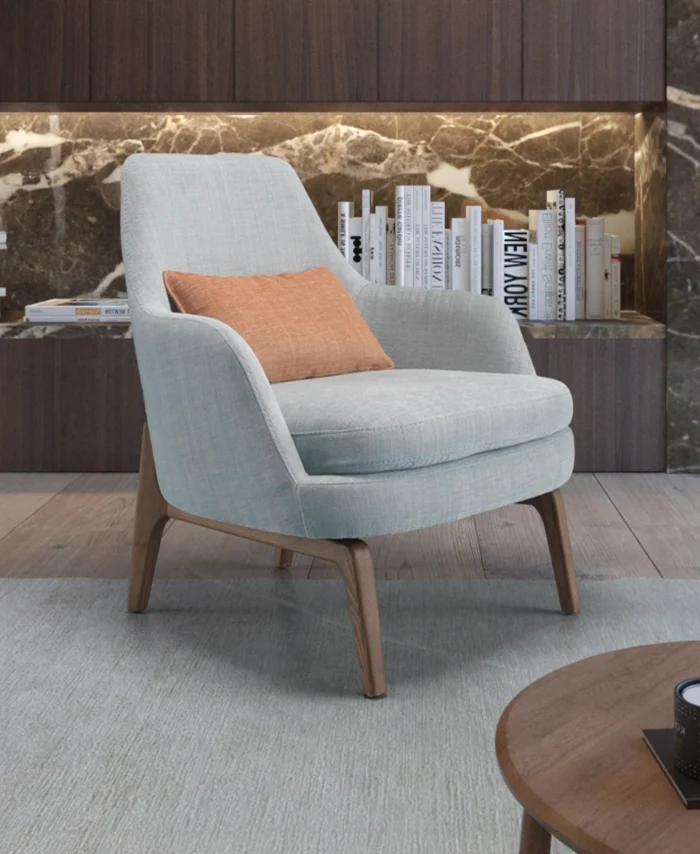 O cadeirão Suu inspira-se na simplicidade do design nórdico. Linhas suaves, assento generoso e pés em madeira criam uma peça que transmite aconchego, leveza e autenticidade, adaptando-se a diferentes ambientes, da sala de estar a um recanto de leitura.