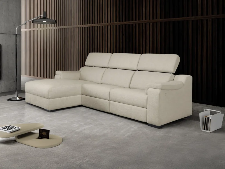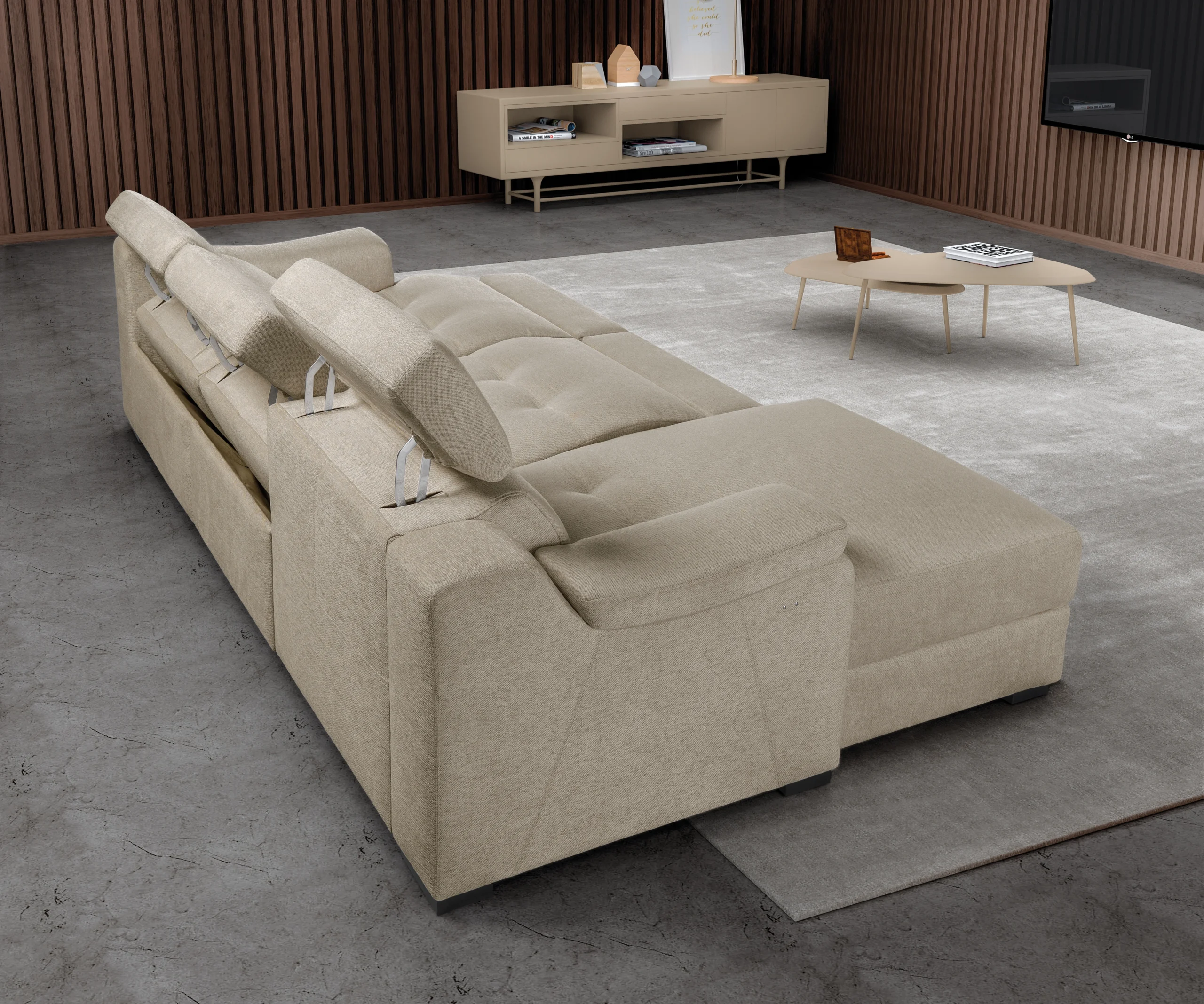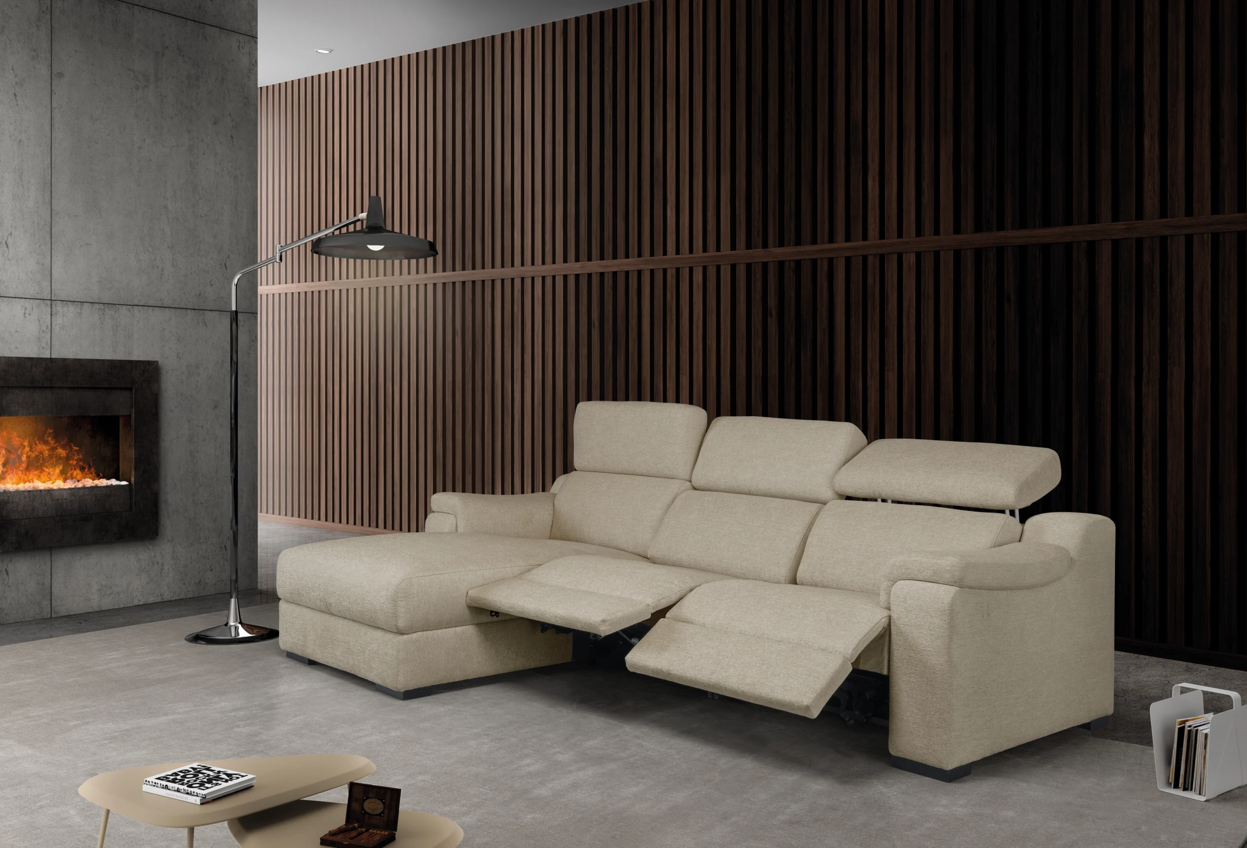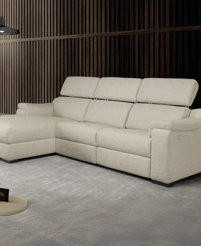 Apoios de cabeça com reclinável elétrico em espuma 25kg/m3, revestidos a fibra acrílica;